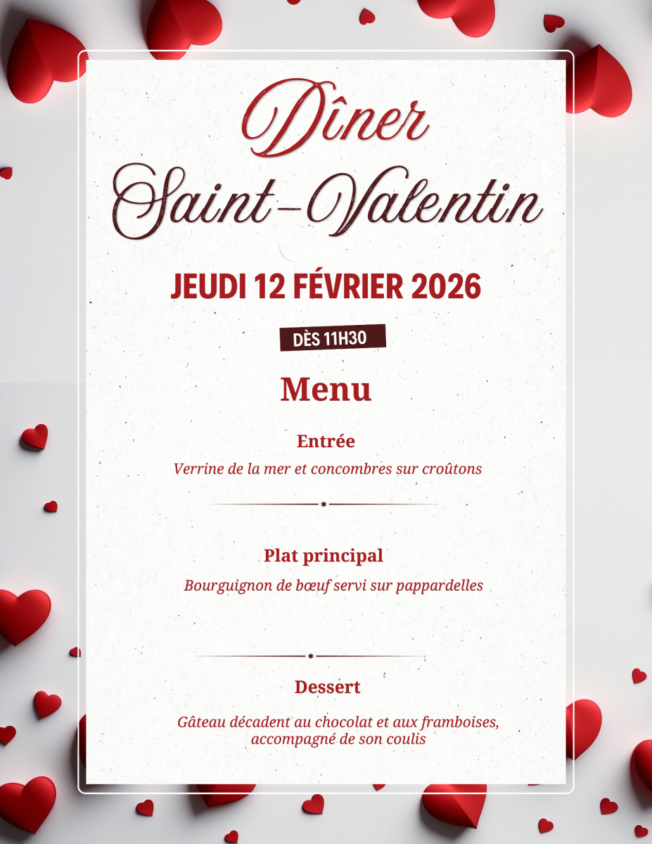 Remarque: inscription obligatoire avant le lundi précédent.Paiment la journée même.